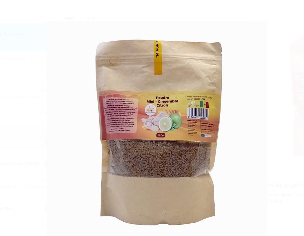 ![]() | Pot poudre miel, gingembre et citronVIP | 500 G | 4500 FCFA | Carton de 24 pièces |